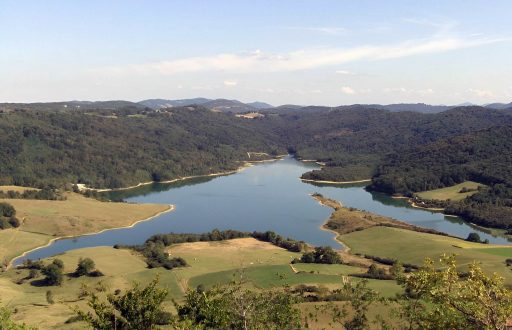 Accessible by bike via the greenway, in the heart of a mountainous and rugged landscape, near the most beautiful sites of the destination, it is a very pleasant spot for swimming, fishing, walking and water sports, leaving travelers amazed by the azure color of the water and the large extent of the lake (550ha, 60 million m3 of water).